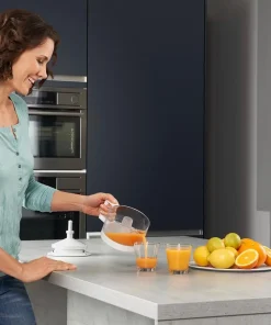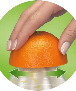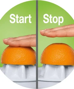 Einfach und ganz ohne zusätzliche Knöpfe: Der Pressvorgang startet durch Herunterdrücken der Frucht. Beim Loslassen stoppt der Kegel.