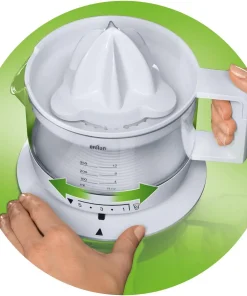 Bestimmen Sie selbst das Ergebnis: Saft mit oder ohne Fruchtfleisch, ganz nach Belieben, durch Drehen des Saftbehälters auf dem Sockel.