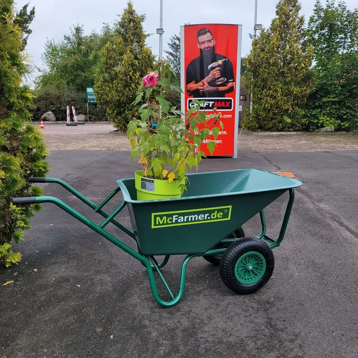 McFARMER® 130 Liter Doppelrad Tiefmuldenschubkarre, Luftbereift