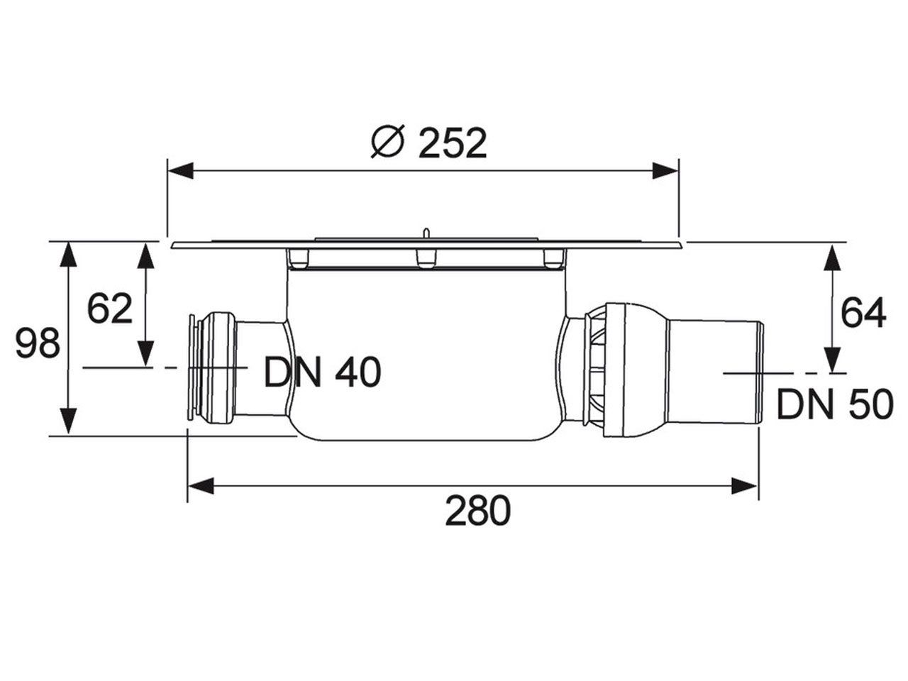 - mit seitlichem Zulauf DN 40 inklusive Verschlussstopfen